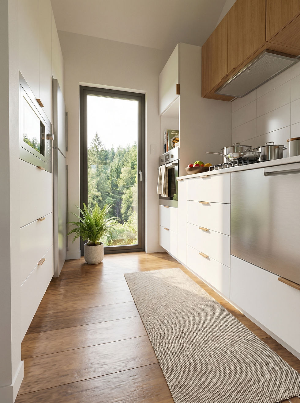 The Siane bedroom is designed to feel spacious, calm, and light-filled. Large windows allow natural light to pour in, creating a bright and relaxing space to start and end your day. One entire wall is dedicated to cleverly designed storage, featuring a combination of generous drawers and three full-height cupboards, giving you plenty of room for clothing and personal items while keeping the room beautifully uncluttered.
