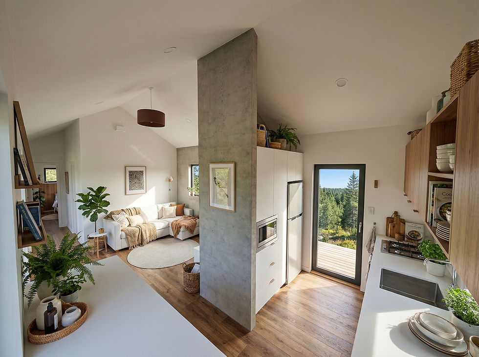 The Siane is a beautifully designed Code-Compliant Minor Dwelling, perfect for those wanting a spacious one-bedroom home. High ceilings create a light, open feel, while the generous bedroom, spacious kitchen, and comfortable lounge provide a highly functional living space.